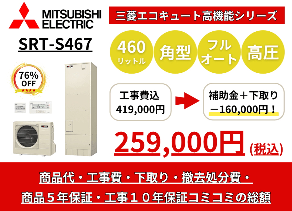最新のエコキュートが業界激安クラス、工事費込み最大78%OFFでご提供します!