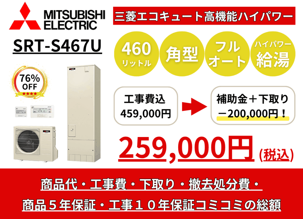 ↓エコキュートからエコキュートへの交換で補助金10万円!