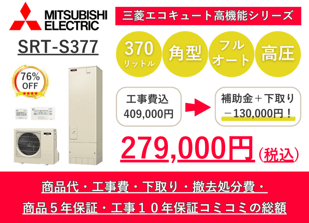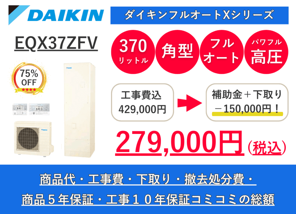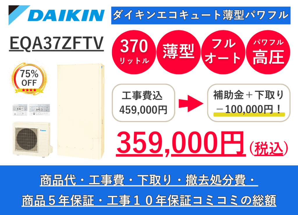 最新のエコキュートが業界激安クラス、工事費込み最大78%OFFでご提供します!